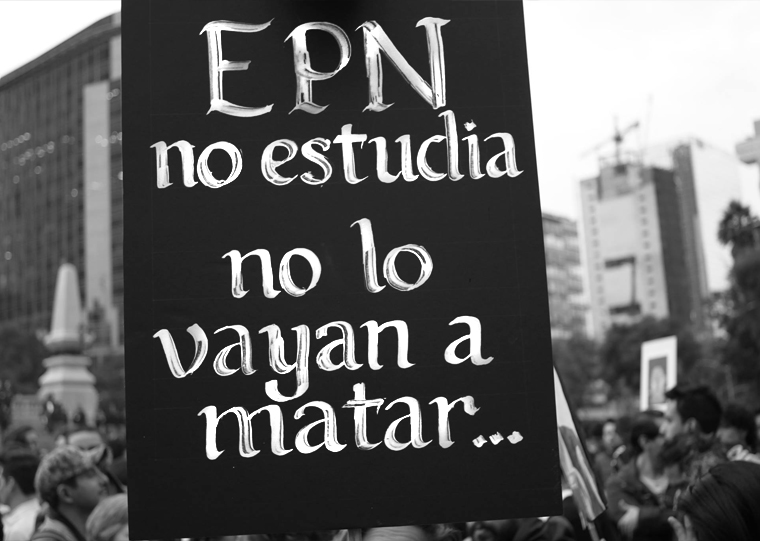 Diseñamos una serie de pancartas para demostrar nuestra indignación por la desaparición forzada de 43 estudiantes en Ayotzinapa y nuestro descontento con el gobierno de Enrique Peña Nieto.